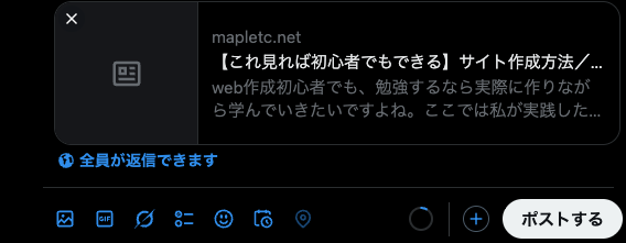 HTML、CSSでサイト作成。X(旧Twitter)へのシェアボタンを作成しましたが、Xの投稿にカードが表示されず困りました・・・